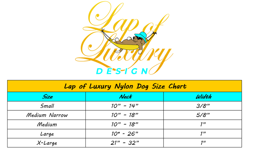| Size | SMALL (10"-14" Neck – 3/8" Width), Medium (10"-18" Neck – 1" Width), Medium Narrow (10"-18" Neck – 5/8" Width), Large ( 18"-26" Neck – 1" Width), X-Large (21-32" Neck – 1" Width) |